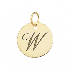 Men's 9ct Gold Plain Round Disk Initial W Pendant On A Curb Necklace