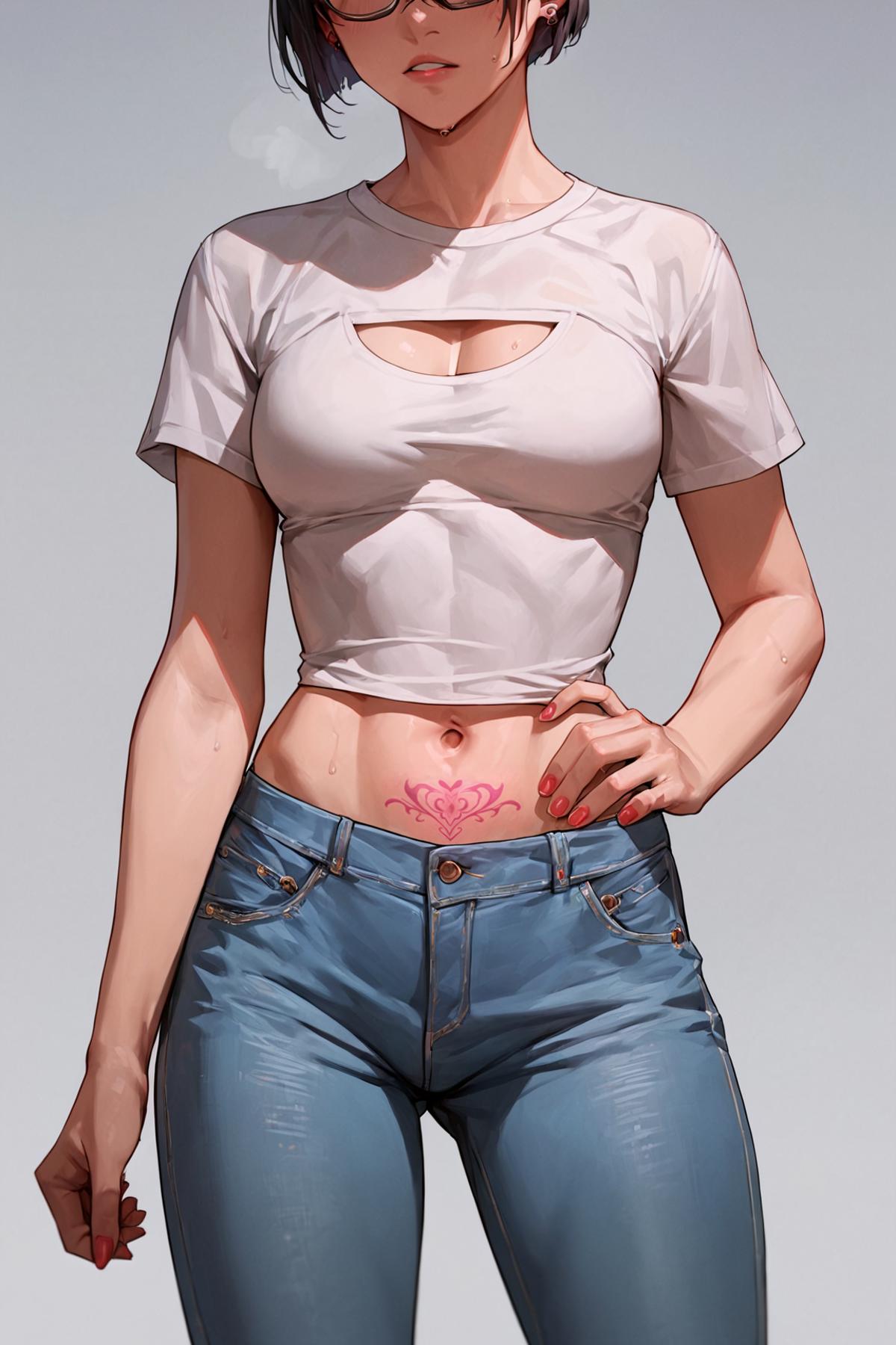 score_9, score_8_up, score_7_up, best quality, masterpiece, 4k, perfect lighting, very aesthetic BREAK 1girl, tramp stamp, <lora:trampstamp-pdxl-v2:1>, sendai \(kancolle\), butt crack,