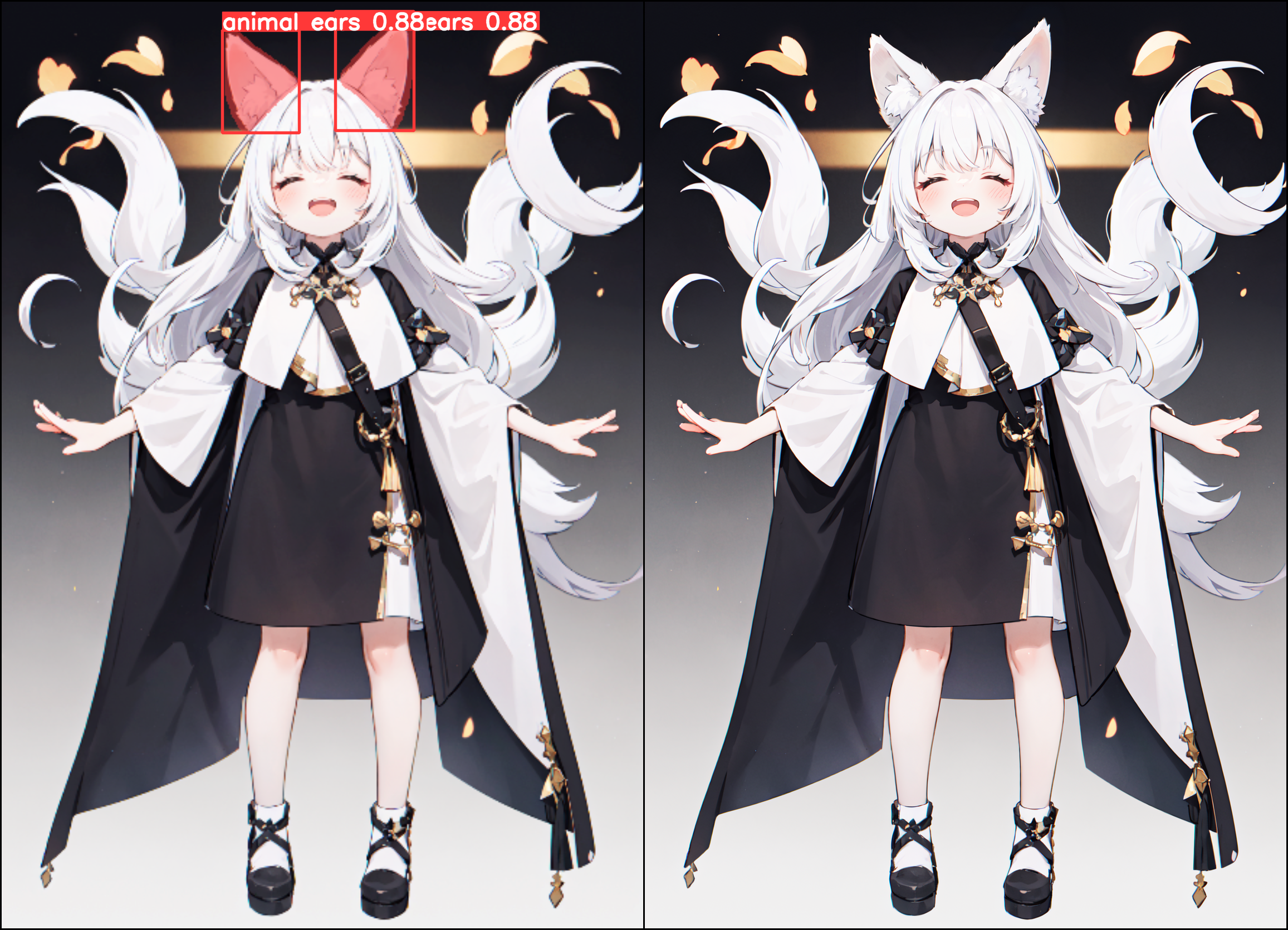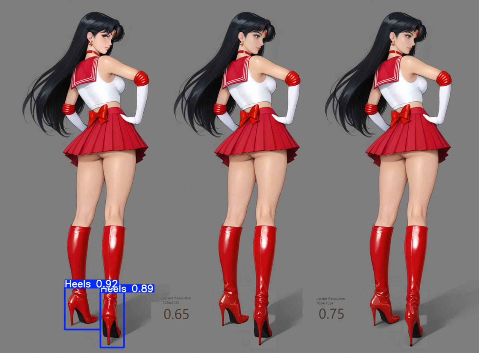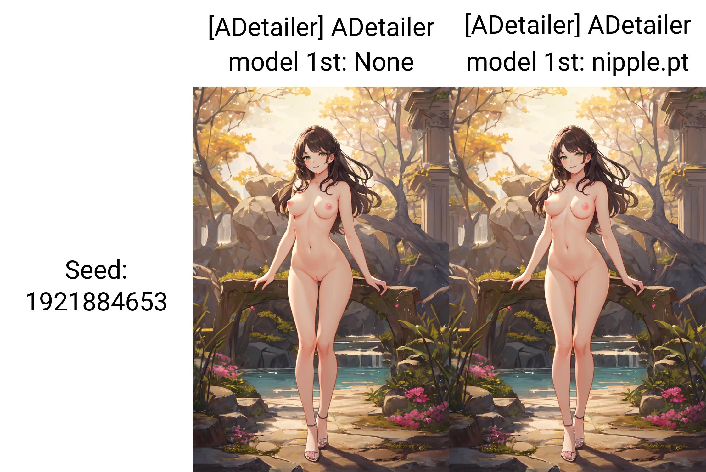 多分旧作より精度は高いですが、検出範囲が細かくなっていますので、旧作のような大き目の検出範囲が欲しい方は、Adetailerの機能を使って範囲を広げるか、旧作を使用してください。また、この画像が検出しない!などありましたら、Pnginfoを添えて画像をここにポストしていただければ、次回その情報を基にデータセットを作成するように心がけます。