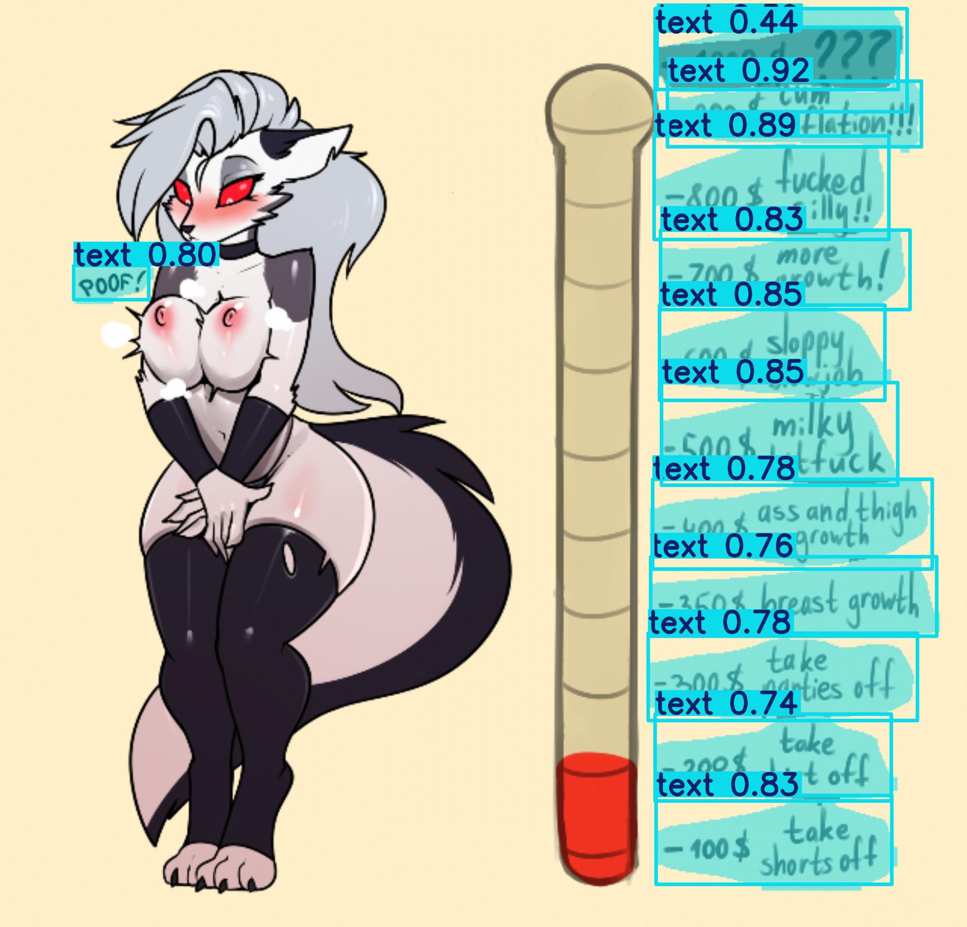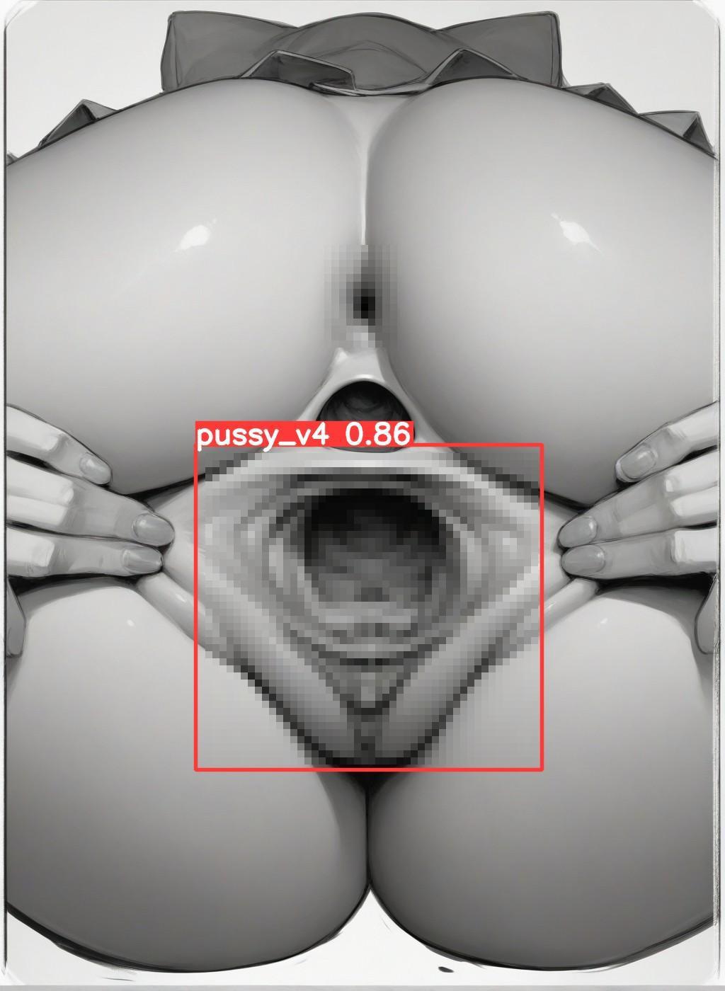 UltralitycsのYOLOv8モデルでアニメ絵をベースに、初心者が見様見真似で作ったので精度は期待しないでください。通常はpussy_best_v3.pt を使ってください。pussy_last_v3.pt は誤検出の可能性がありますが、うまく検出できないときに使ってみてください。